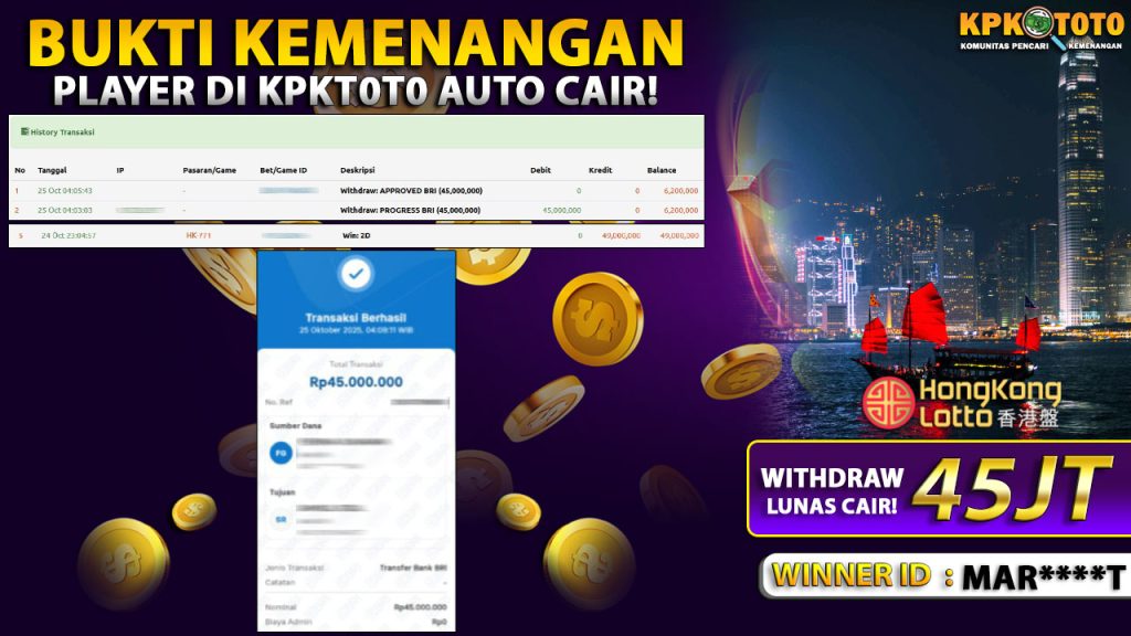 Bukti Kemenangan 25 OKTOBER 2025 Di PASARAN TOGEL HONGKONG LOTTO WD 45 Juta