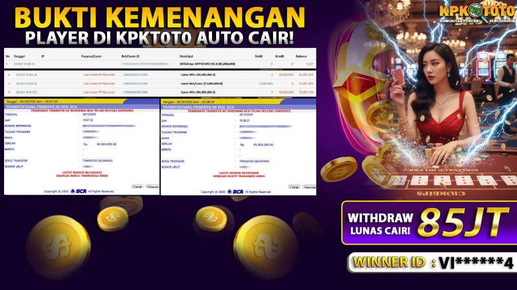 Bandar togel KPKTOTO merupakan bandar togel dan slot online yang membayar semua kemenangan member hingga lunas. Setiap pembayaran pada situs kami dilakukan dengan cara transfer ke rekening tujuan yang sudah di daftarkan pada situs togel online kami, Pembayaran hanya dapat di proses jika rekening yang di daftarkan telah valid dan dapat di transfer. Semua kemenangan member yang mendapatkan hadiah jackpot terbesar akan kami posting agar semua pemain dapat melihat bandar situs terpercaya KPKTOTO ini membayar semua kemenangan member hingga lunas. Setiap postingan yang kami posting akan kami lakukan sensor pada nomor rekening 4 digit dan nama rekening untuk menjaga privasi dan kerahasiaan member. Postingan Jackpot yang kami posting agar member atau pemain yang belum pernah bermain bisa melihat bandar togel Bukan Kaleng Kaleng Seperti KPKTOTO ini, Semua postingan jackpot yang kami posting dapat di lihat data keasliannya melalui nomor reff yang di tunjukan pada bank atau mbanking saat kita melakukan transfer.